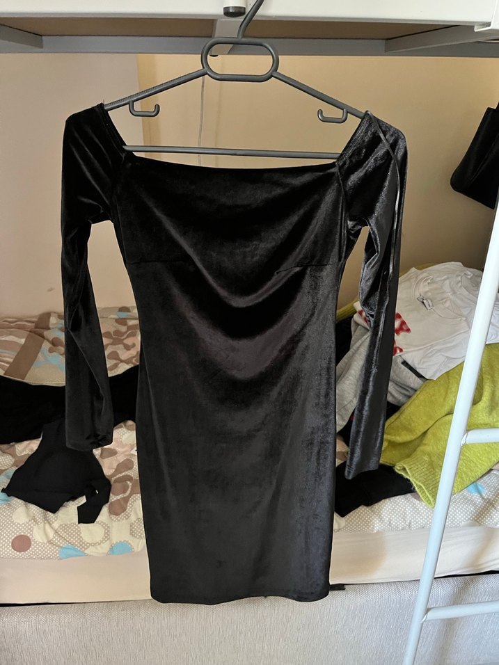 Uzun Kollu Siyah Mini Gotik Elbise