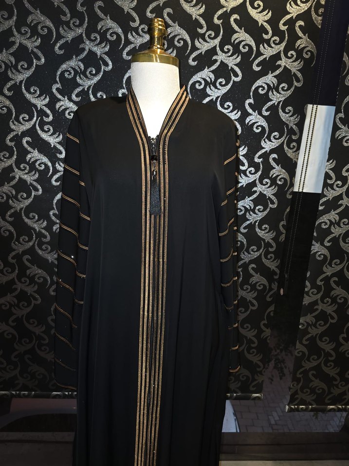Uzun Kollu Siyah Nakışlı Kadın ferace