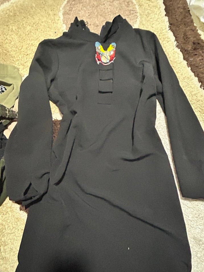Uzun Kollu Siyah Nakışlı Kadın Tunik