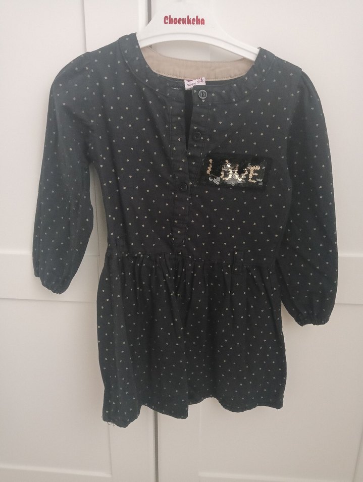 Uzun kollu, V yaka ve bol kesim siyah kız elbisesidir. Düğmeli ve nakışlı desenlere sahiptir, 'LAVE' yazılı payetli detay içerir.
