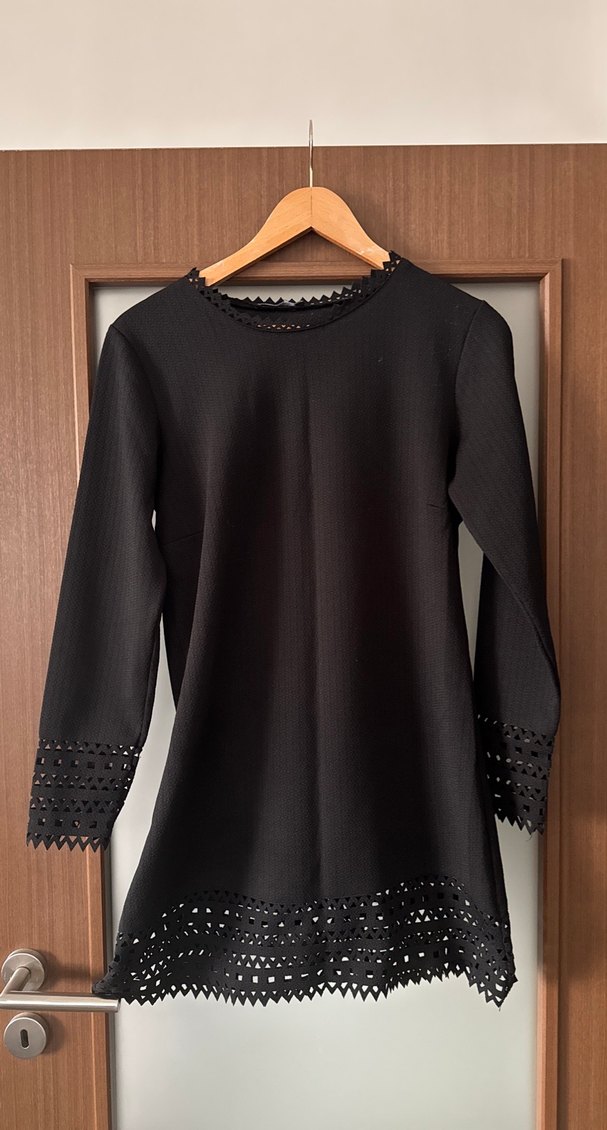 Siyah renkte, uzun kollu ve bisiklet yaka olan bu tunik, regular fit kalıpta ve midi boydadır. Pliseli ve nakışlı detaylarıyla minimalist ve sade gotik tarz sunar. Sentetik kumaştan yapılmıştır.