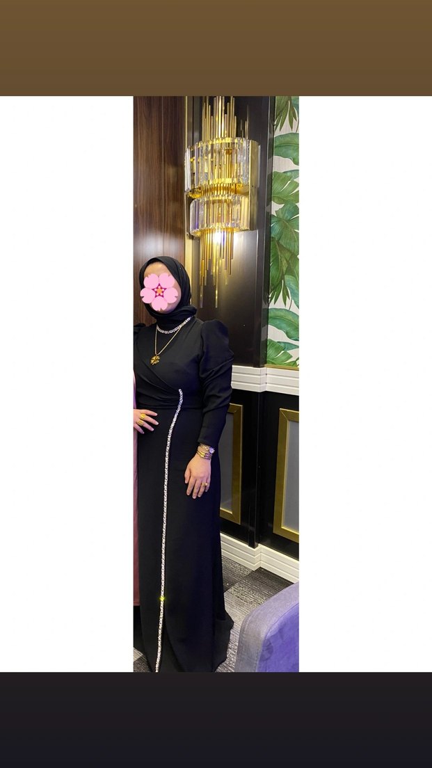 Yüksek yakalı, uzun kollu siyah abiye elbise, nakış detaylıdır. Drapeli ve regular fit olup, minimalist gotik tarzını yansıtır.