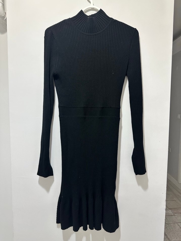 Dar kesim, uzun kollu ve yüksek yakalı siyah örgü elbise. Sentetik kumaştan yapılmış, goth ve Paris tarzını yansıtır.