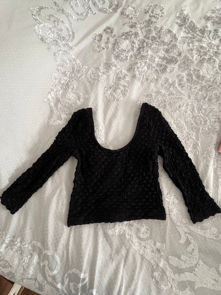 Uzun Kollu Siyah Örgü Kadın bluz ve turuncu crop 2 ürün