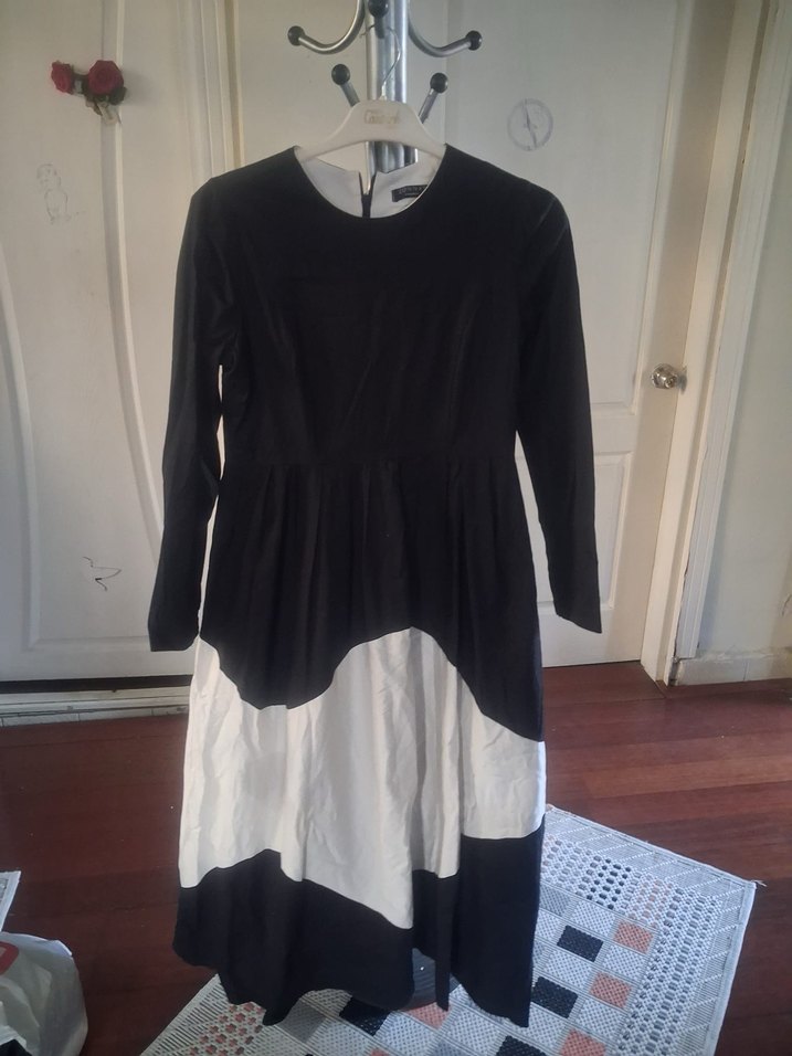 Uzun Kollu Siyah Pamuklu Robalı Elbise