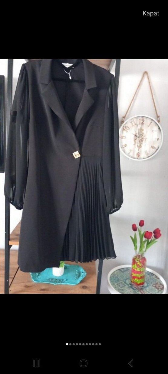 Uzun Kollu Siyah Pileli Kadın Blazer