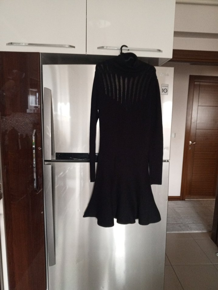 Uzun Kollu Siyah Pliseli Triko Elbise