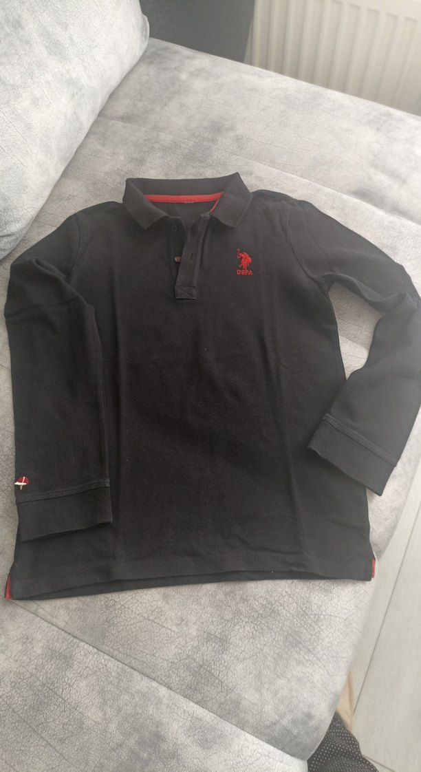 Çocuk için uzun kollu, düğmeli ve polo yakalı siyah tişört. Yumuşak ve sıcak kumaştan, göğsünde kırmızı baskılı logo ile günlük sokak stiline uygun.12 11 yaş 1 veya 2 kere giyildi orjinal simsiyah ışık yanıltmasın