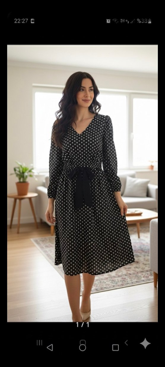 Uzun Kollu Siyah Puantiyeli Günlük Elbise - Görsel 1