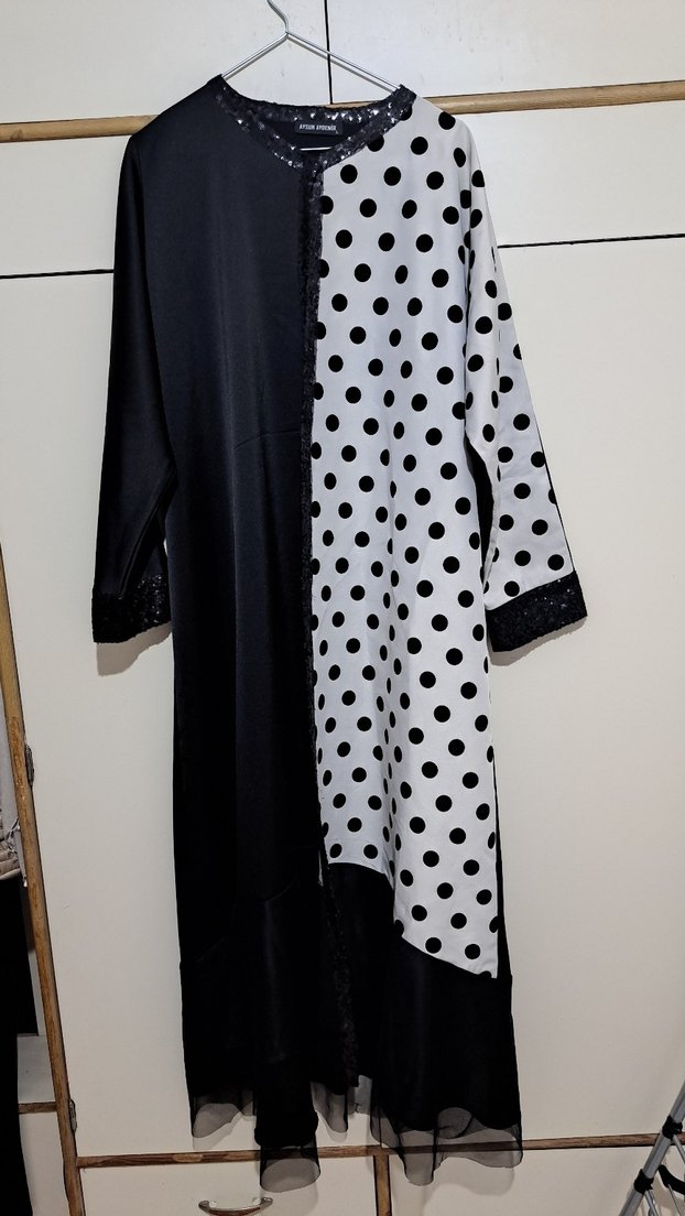 Bu uzun siyah abaya tarzı ceket..drapeli tasarım, notalı yakası ve uzun kolları ile dikkat çekiyor. Ürün ozel günler için uygun ozel tasarım aysun aydemir markadır. 48 52 beden arası uygundur