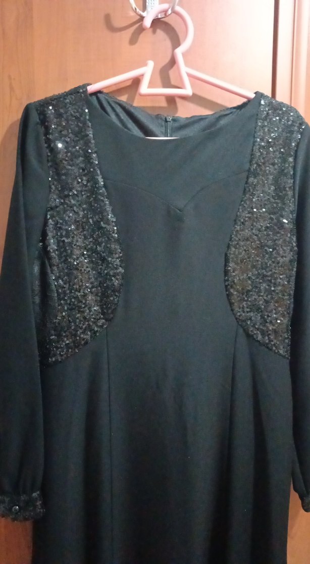 Uzun Kollu Siyah pul detay 42 beden balık abiye elbise