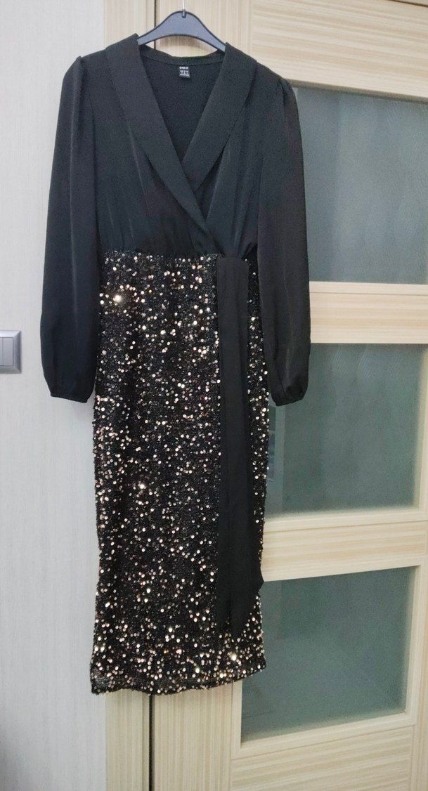 Uzun Kollu Siyah Pullu Abiye Elbise