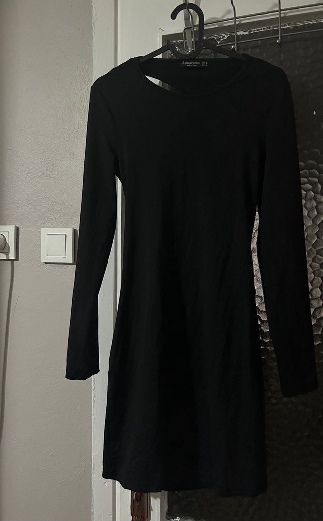 Uzun Kollu Siyah sırt dekolteli elbise