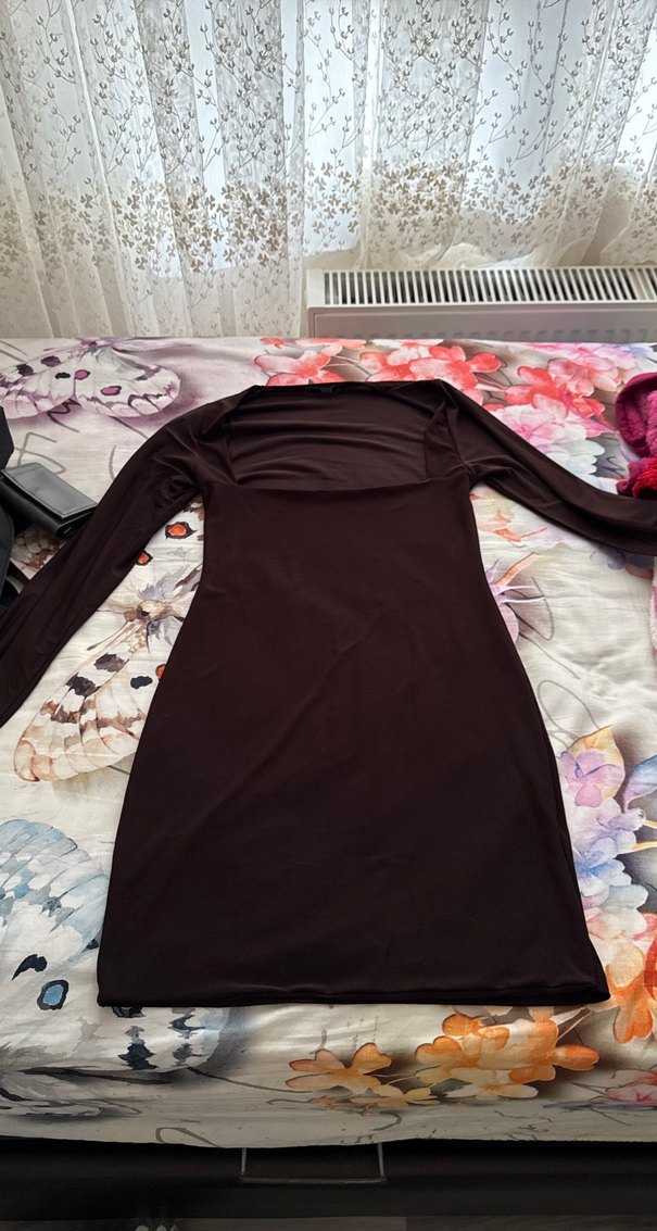 Uzun Kollu Siyah Straplez Elbise