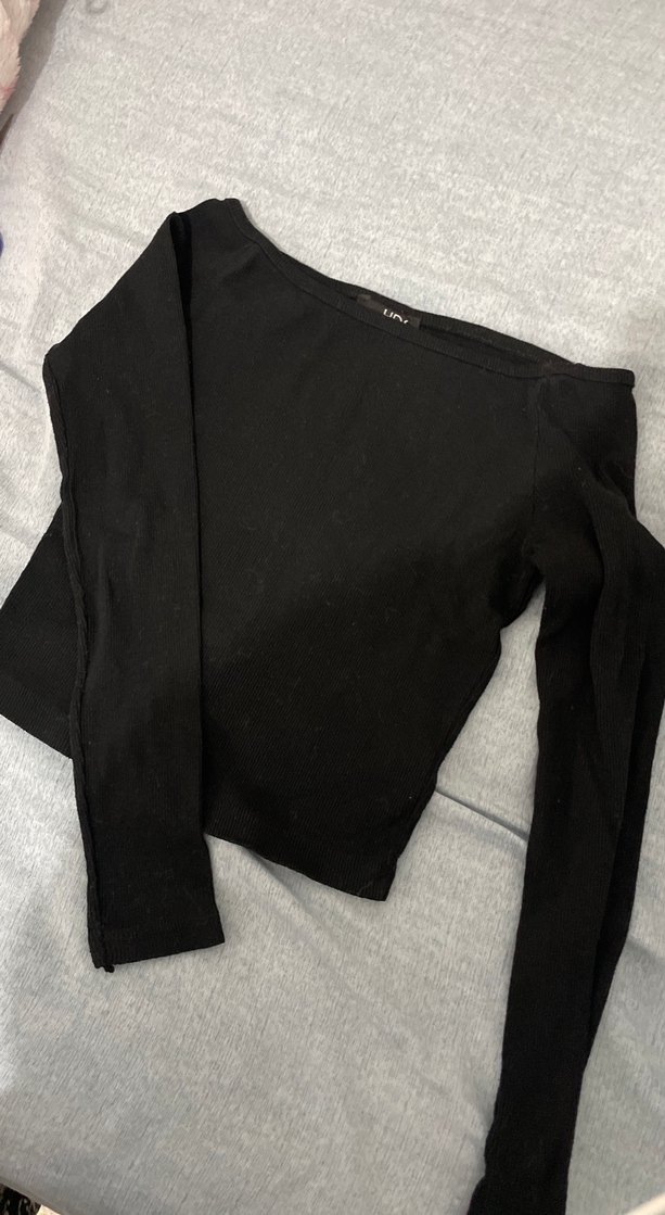 Uzun kollu, tekne yakalı siyah bluz, düz ve şık tasarımıyla günlük kullanıma uygun, sentetik dokulu kumaştan yapılmıştır.