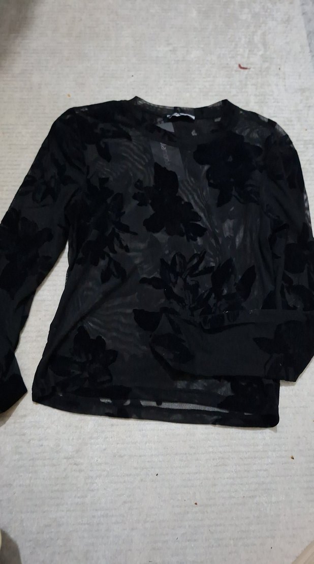 Uzun kollu, yuvarlak yakalı, gevşek kesim siyah bluz. Transparan sentetik kumaştan, gotik tarzda, midi boyda, günlük kullanıma uygun.