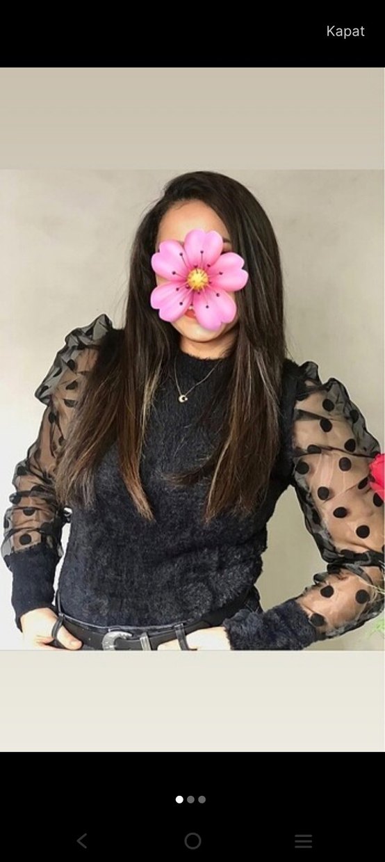 Uzun Kollu Siyah Tül Detaylı Kadın Bluz