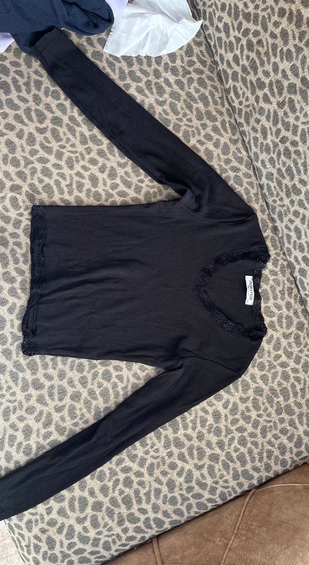 Bu siyah, uzun kollu ve V yakalı kadın body , yumuşak sentetik kumaştan yapılmıştır ve rahat goth tarzını yansıtır.