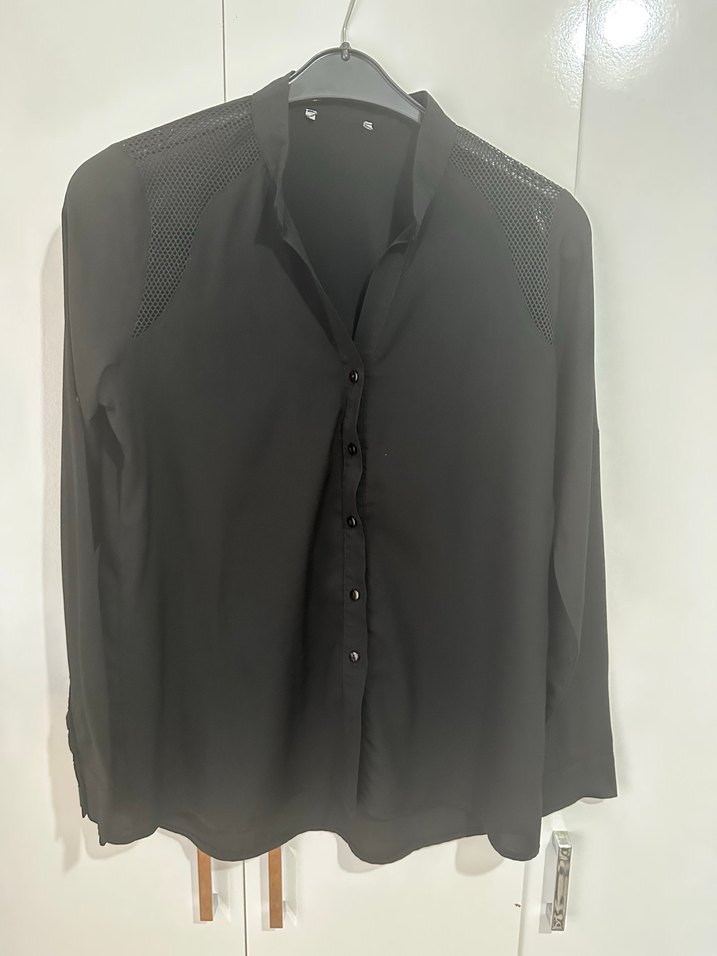 Uzun Kollu Siyah V Yaka Kadın Gömlek