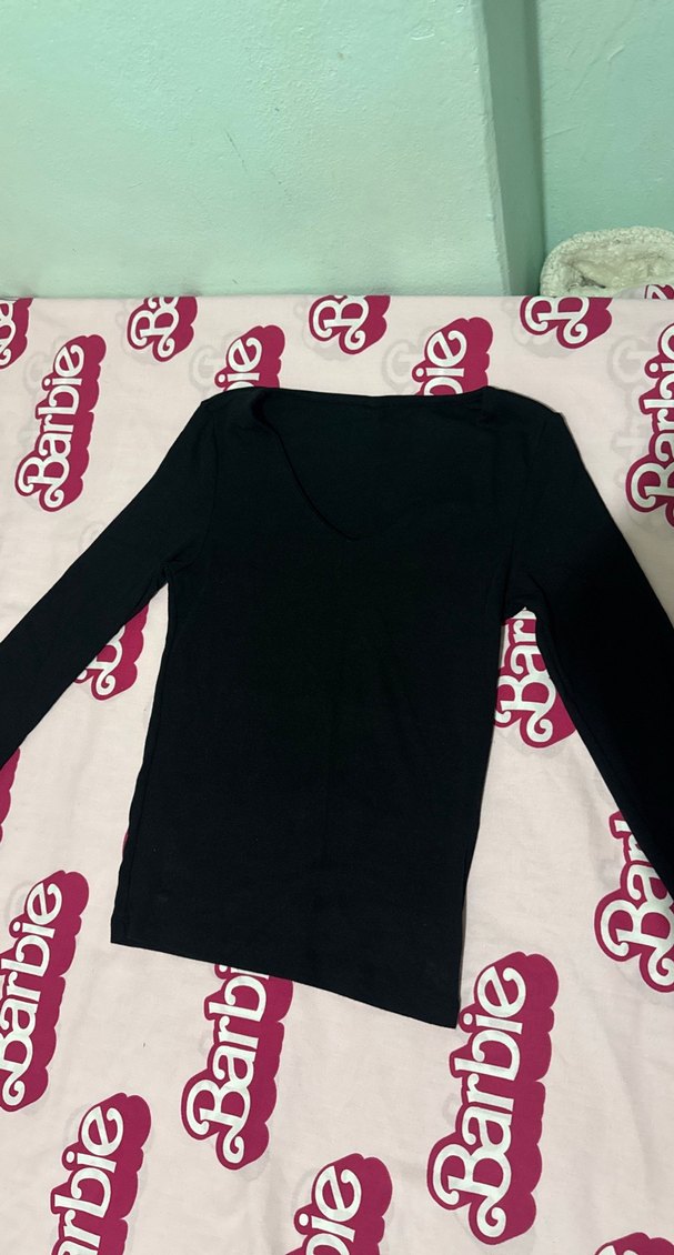 Uzun Kollu Siyah V Yaka önü açık crop bluz