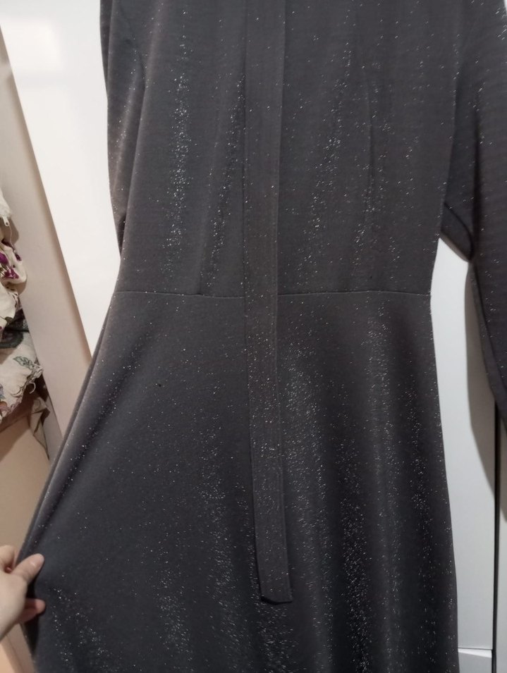 kullanılmış abiye ufak ip cekilmeleri var o kadar tarzı yakalı, uzun kollu ve fit kesim siyah uzun elbise, haf
