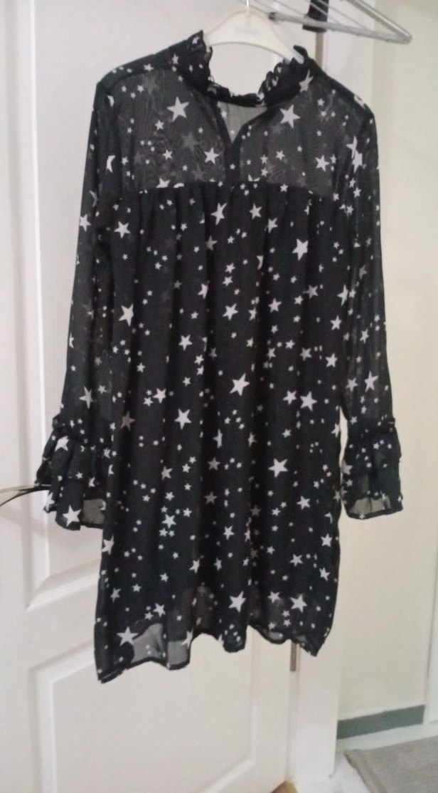 Uzun Kollu Siyah Yıldız Desenli Mini tunik Elbise