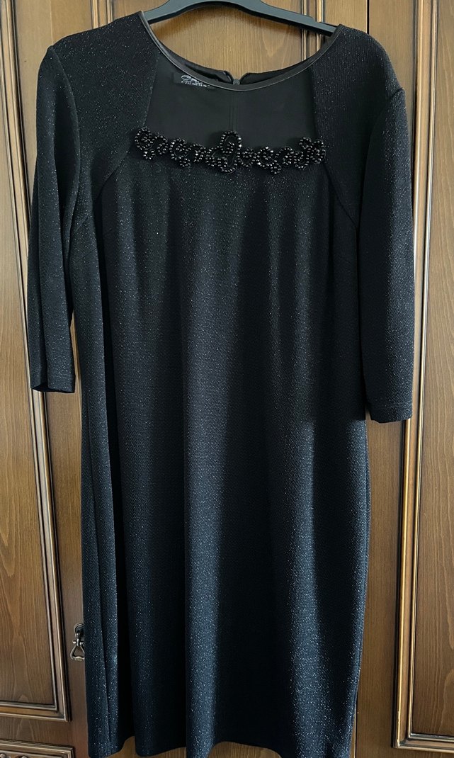Uzun kollu, yuvarlak yakalı siyah elbise, zincir detaylı nakışlarla klasik ve şık bir goth tarzı sunar,