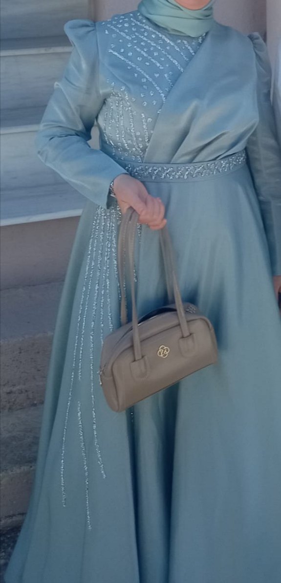 Uzun, şu yeşili renkteki bu abiye elbise drapeli tasarıma, V yakaya ve uzun kollara sahiptir. Düz kesim olup düğün için uygundur, klasik ve göz alıcı bir şıklık sunar. Kumaşı akıcı ve hafif parlak dokudadır. ✨ 44-46 beden uyumludur.