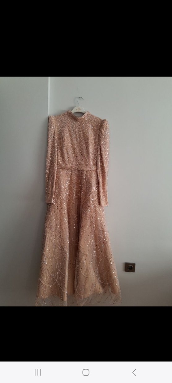 Gold taşlı abiye sadece nişamında giydim. Çok iyi durumda pazarlık payı vardır