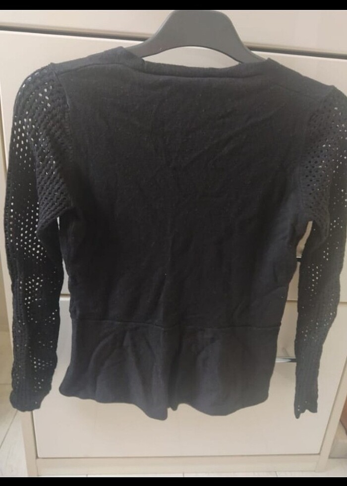 Kolları çelik detaylı,uzun kollu eteği volanlı v yaka siyah triko