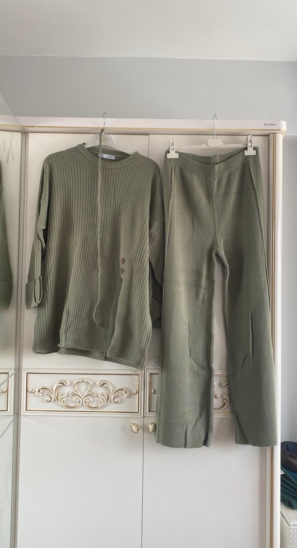 Uzun Kollu Triko Kadın Takım - Haki