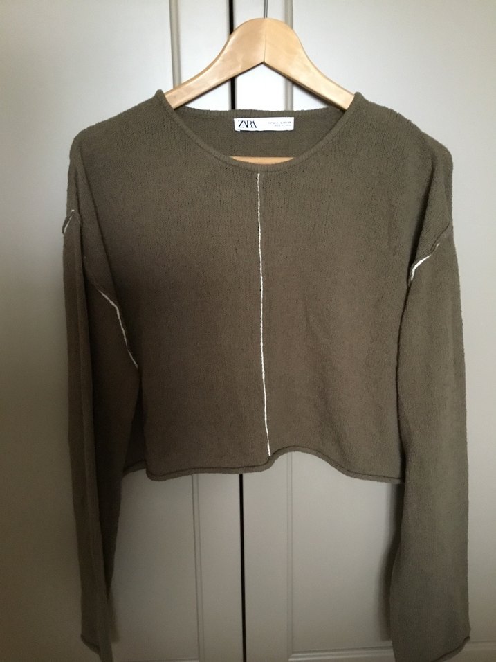Yeşil renkte, merserize kumaştan örülmüş, uzun kollu, bisiklet yaka ve bol kesim kadın kazak. Normal midi boyda, günlük kullanıma uygun.