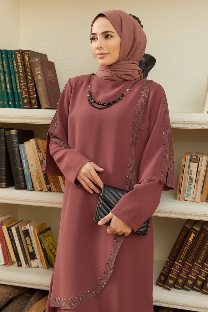 Uzun, bol kesim kiremit Gül kurusu tunik; işlemeli detaylı, drapeli tasarım, yuvarlak yaka ve uzun kollu kolyesi var. Sayılı giyildi anne elbisesi ,bol ,tertemiz ürün sorunu yoktur. 4 mevsim giyilebilir, 150 cm boyunda, 48 beden Hürrem marka ✨