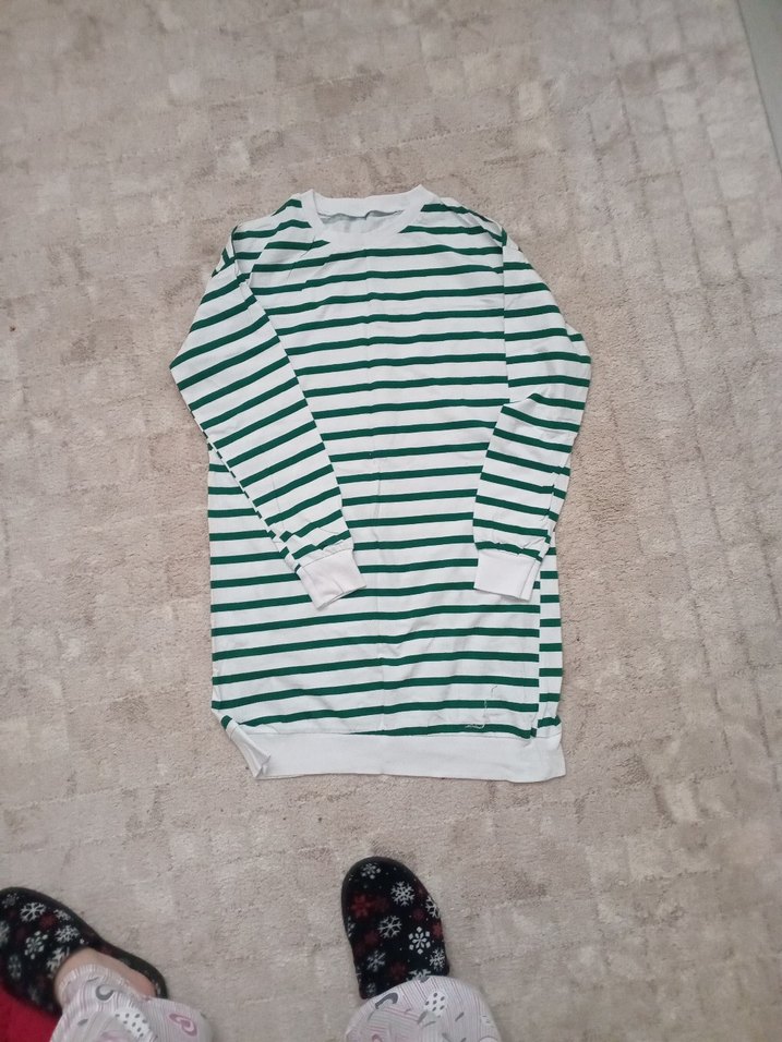 Uzun kollu, tunik, rahat kesimi ve çizgili deseniyle günlük sokak stiline uygundur.