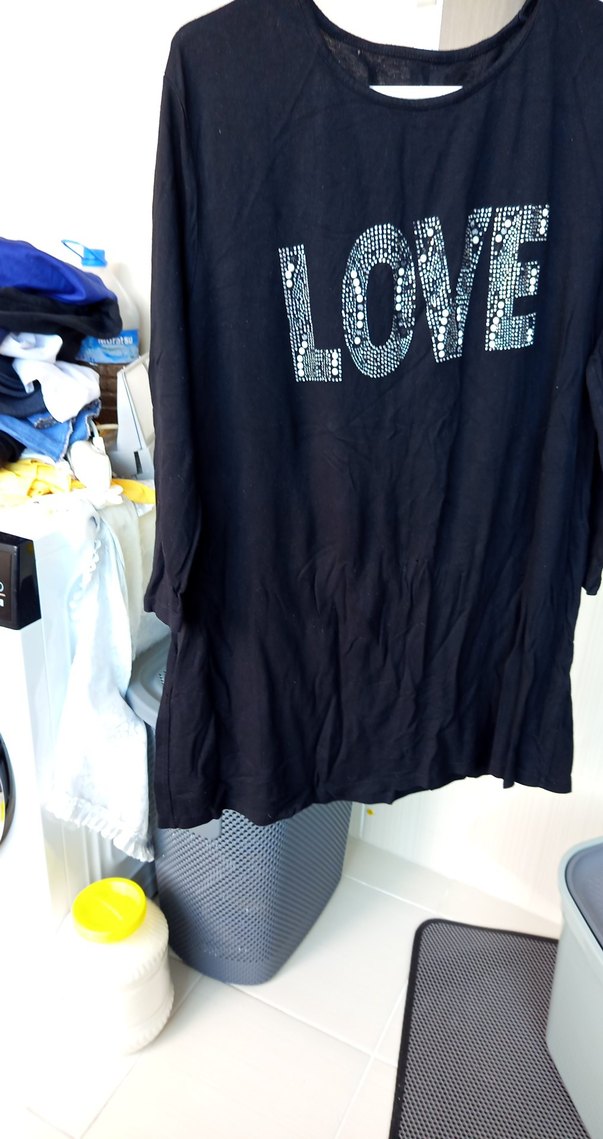 Pamuklu kumaştan, uzun kollu ve bol kesim tunik Önünde payetli 'LOVE' yazısı bulunur, günlük sokak stiline uygundur.