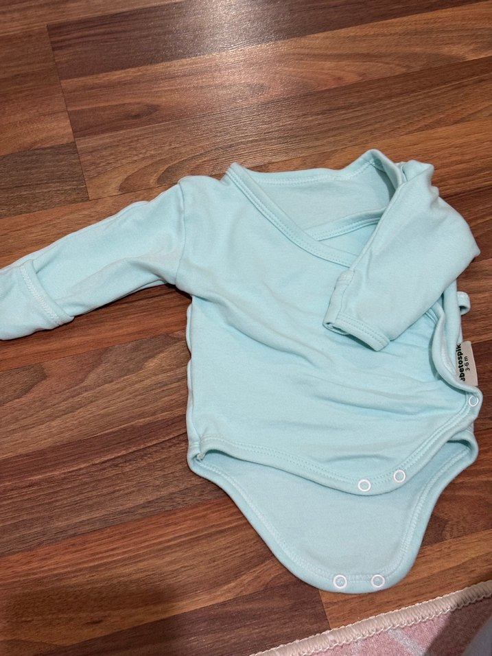 Pastel turkuaz renkte, uzun kollu ve V yakalı, yumuşak ve sıcak dokulu bebek body. Düğmeli kapanışıyla giyimi kolaylaştırır.