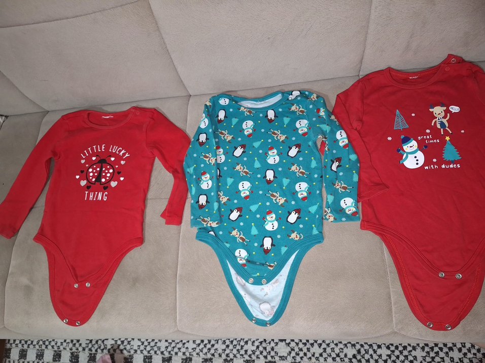 Renkli turkuaz bebek body, uzun kollu ve yuvarlak yakalıdır. Yumuşak örme kumaştan yapılmış olup, karlı adam ve penguen desenleriyle süslenmiştir. ❄️