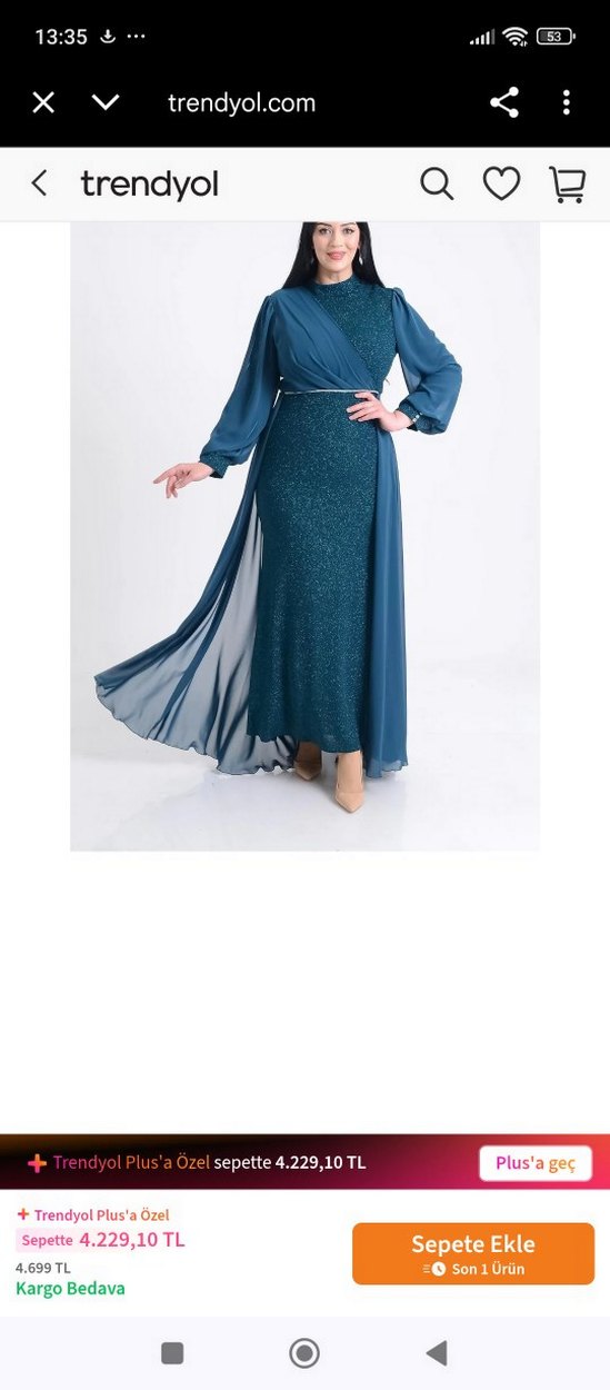Uzun kollu, drapeli ve dar kesim turkuaz abiye elbise. Sade yakalı, şık ve gösterişli düğünler için uygun, hafif parlak kumaş detaylı. bir iki kere kullanildı temiz