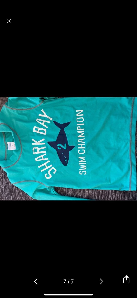 Uzun kollu, turkuaz renkli erkek çocuk mayo üstü, baskılı köpekbalığı ve yazı detaylıdır. Yumuşak ve rahat kumaştan üretilmiştir.