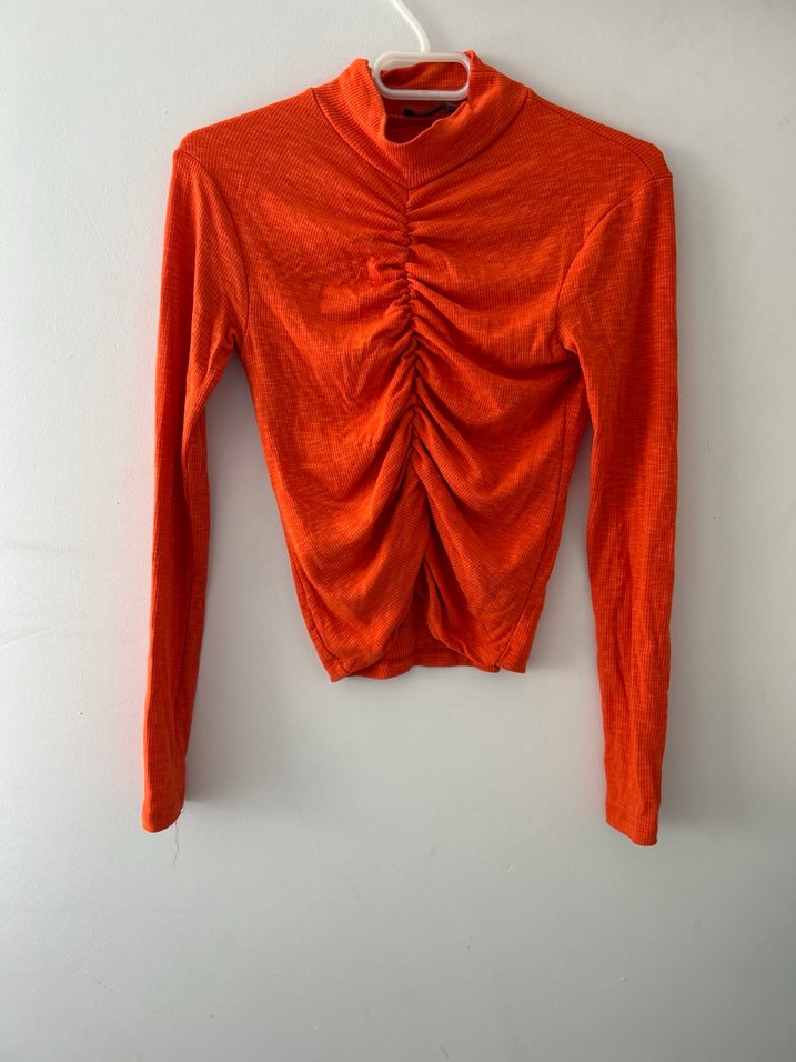 Uzun Kollu Turuncu Pilili Kadın Triko
