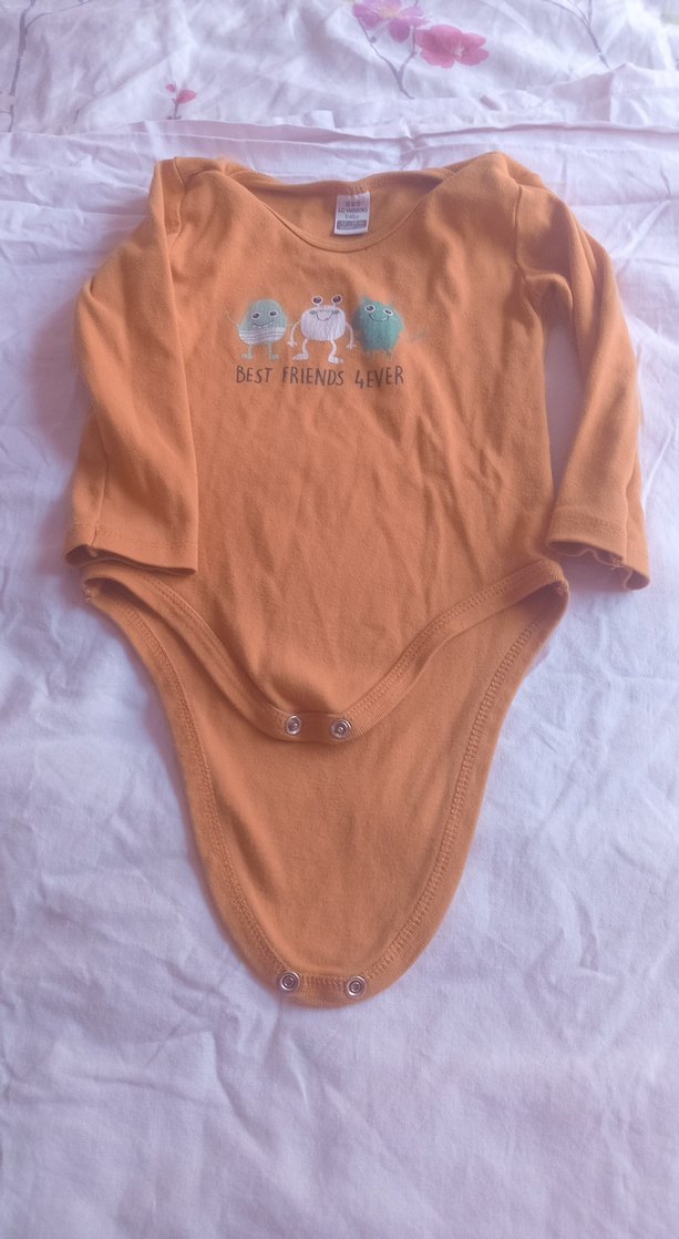 Uzun kollu, turunxu bebek body, yuvarlak yaka ve düğmeli kapama. Pastel tonlarda, sevimli karakterler ve "Best Friends 4ever" yazılı baskı içerir.