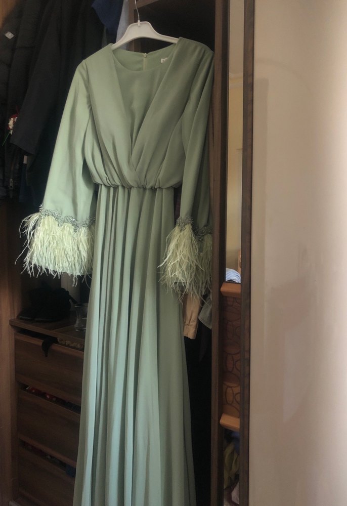 Uzun Kollu Tüylü Abiye Elbise