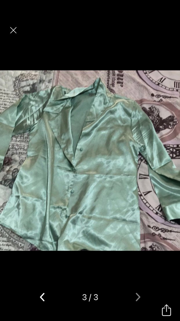 Uzun Kollu uzun pacali Yeşil Saten Gömlek