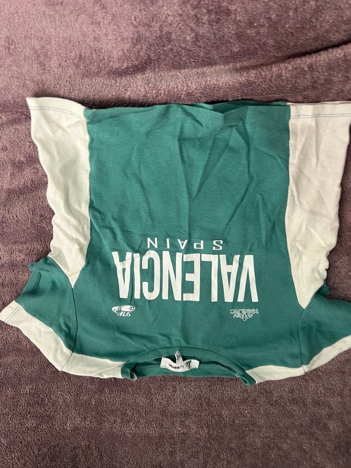 Kız çocukları için uzun kollu, V yakalı ve baskılı tişört. Yumuşak ve sıcak kumaştan üretilmiş, cırt cırtlı detaylara sahip, pastel yeşil ve beyaz renklerle trend sokak stili sunar.