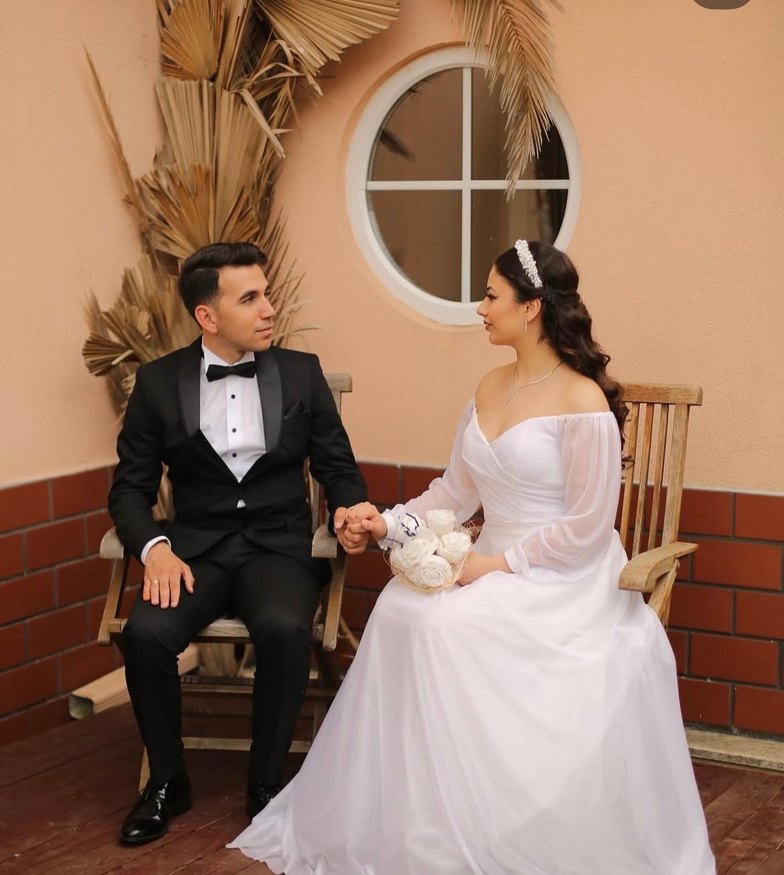 Uzun kollu ve V yaka detaylı beyaz A kesim gelinlik, bol ve zarif bir duruş sunar. Modern klasik stili, minimal ve cesur kişiliklere uygundur.