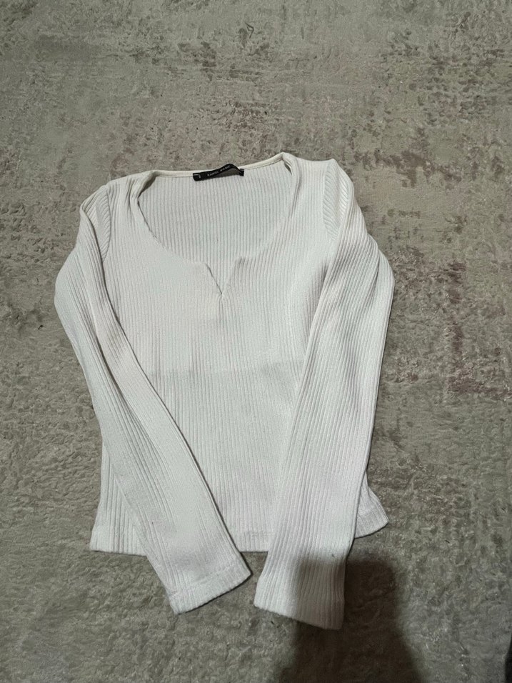 Uzun Kollu V Yaka Beyaz Kadın Kazak