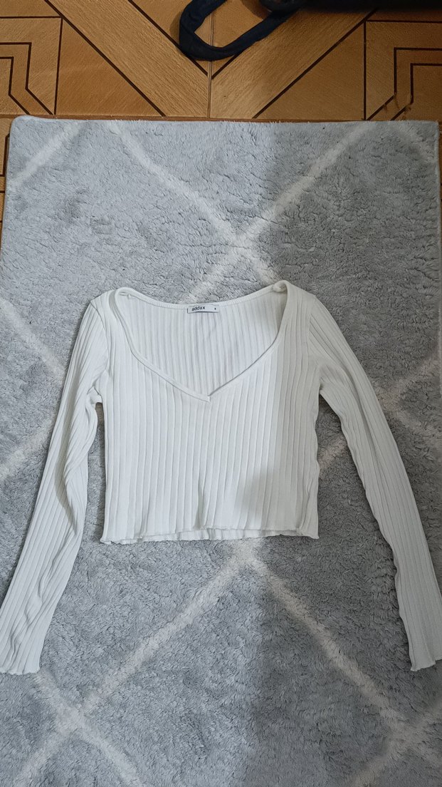 Uzun Kollu V Yaka Beyaz Kadın Kazak