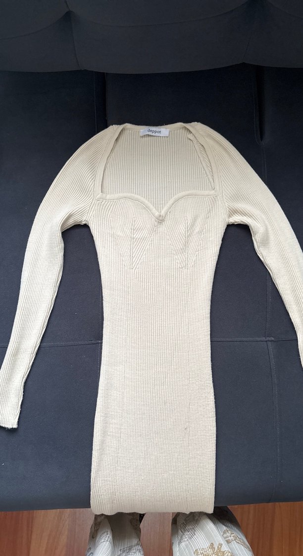 Uzun Kollu V Yaka Beyaz Triko Kadın Elbise