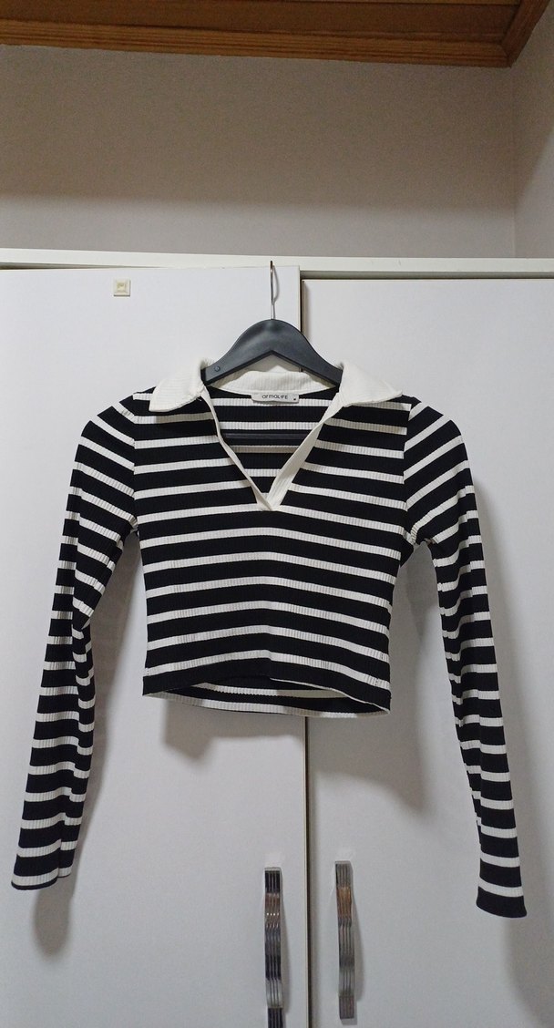 Uzun Kollu V Yaka Çizgili Crop