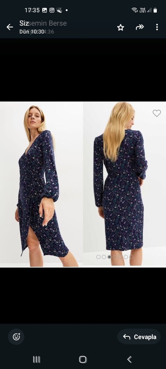V yaka ve uzun kollu, günlük kullanıma uygun elbise. Rahat ve şık görünüm.